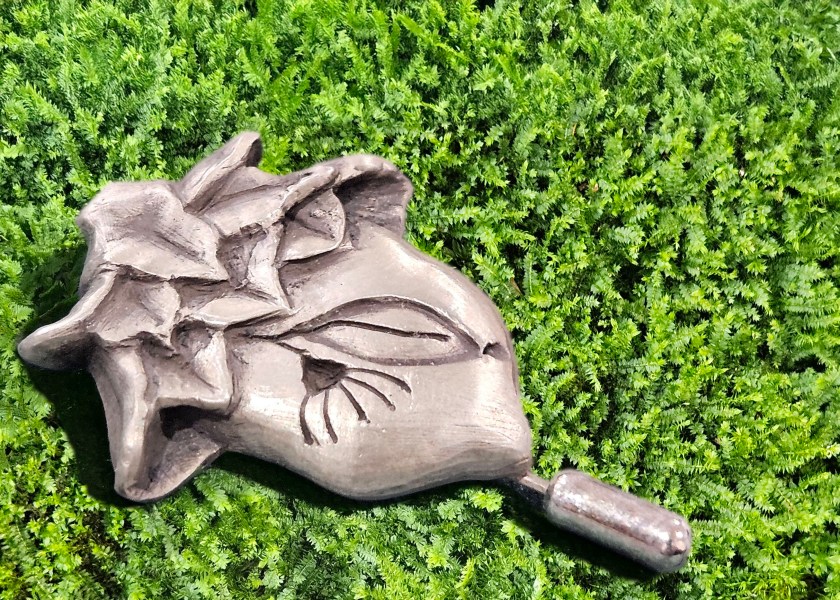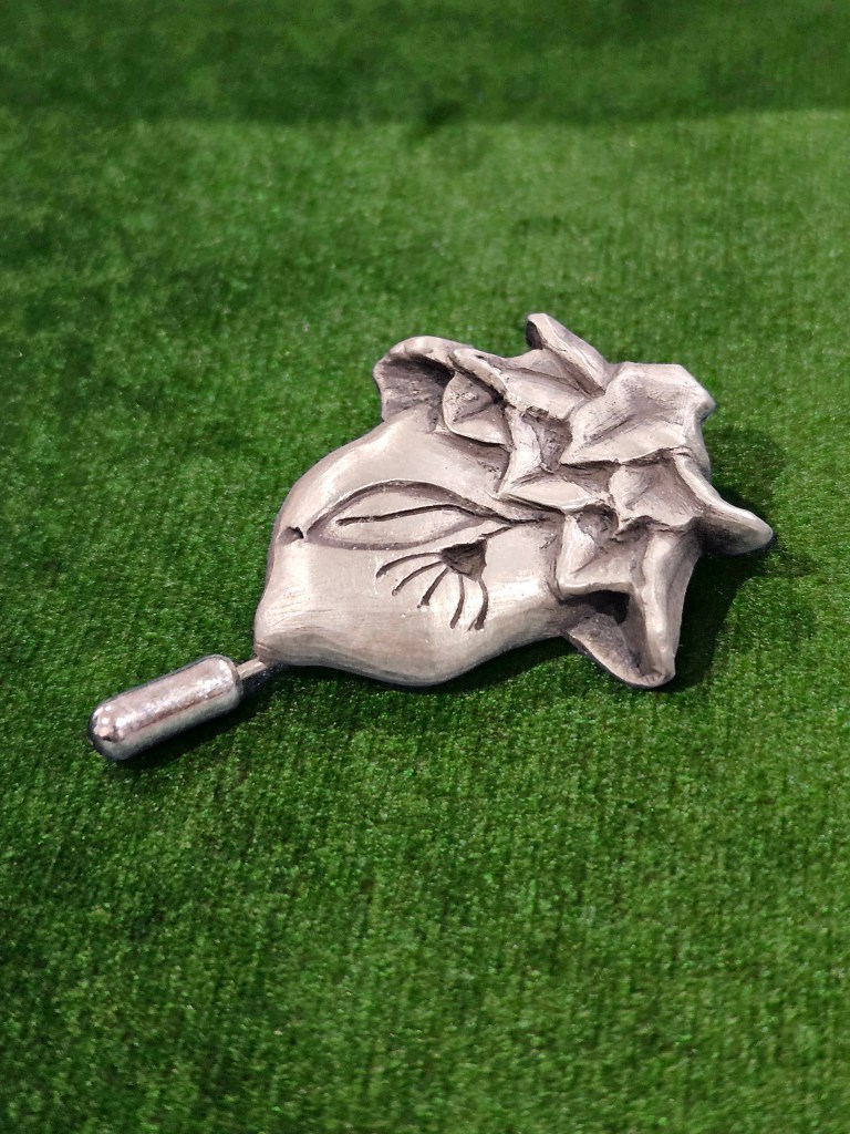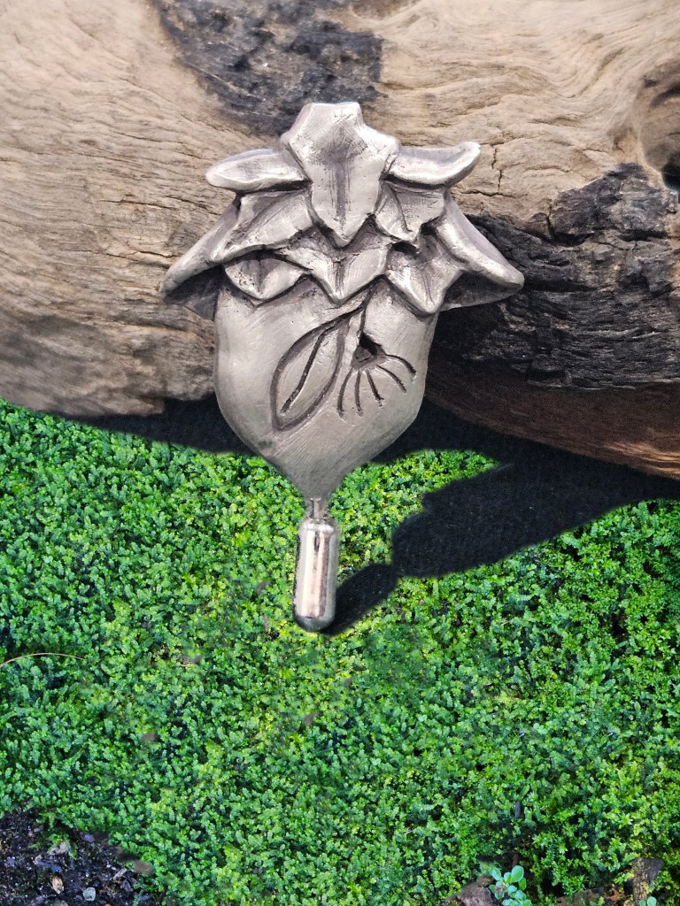 This acorn was carved in wax and cast in sterling silver. Growing up in the North of America, there were lots of oak trees. And I love oak trees. I imagine this acorn represents me – the seed of an oak from the north. But I’ve since moved to Brisbane and love this area too, but no oak trees. There are, however, lots and lots of Eucalypts. So while I may feel like an acorn at my root… inside, there’s a little gum tree just under the surface.