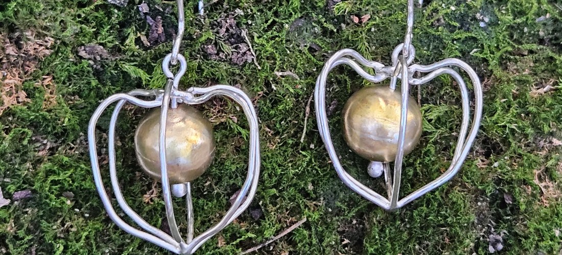 This phoenix is hand carved from wax and then cast in sterling silver. Not an ordinary phoenix made of fire but one born of ice and crystal. She carries in her claws a shard of amethyst in a hand fabricated, sterling silver setting. The choker is hand made from .9mm wire. A 4-in-1 chainmail pattern with each link soldered shut for strength.