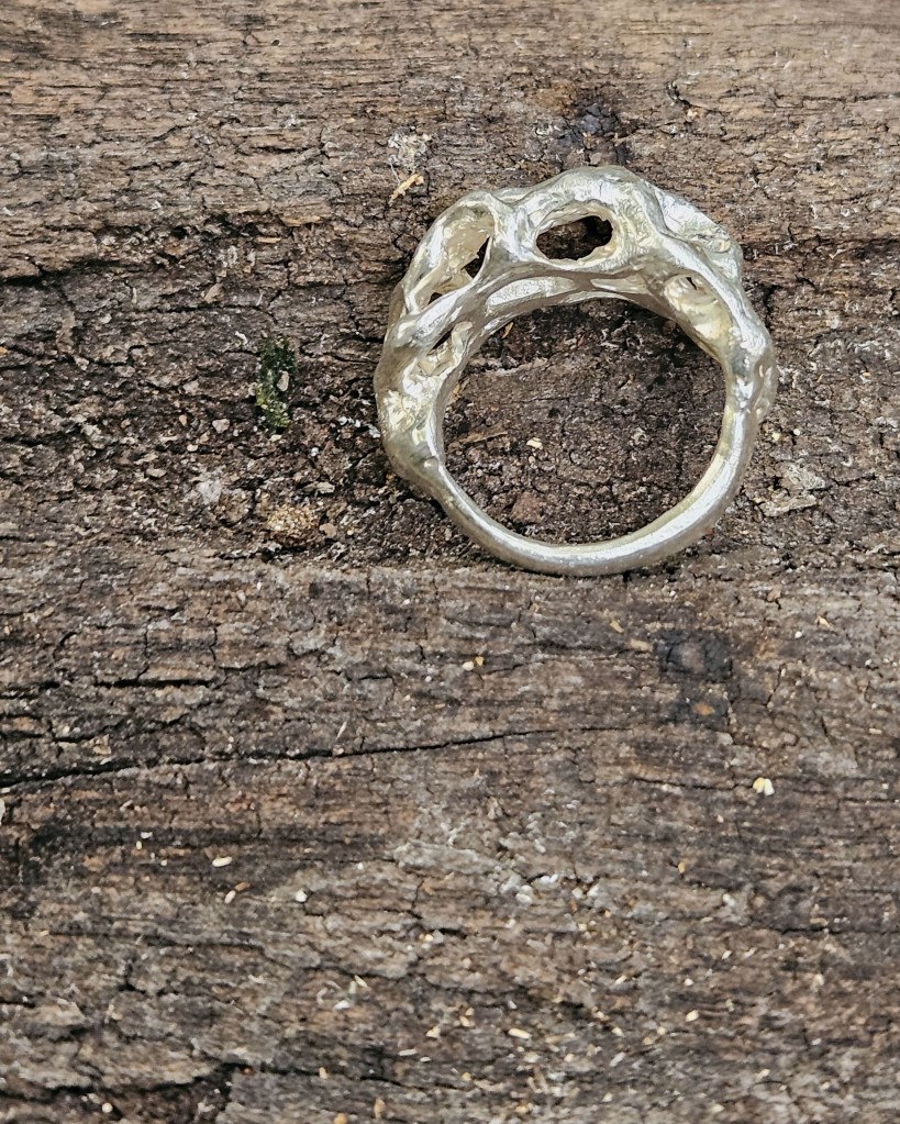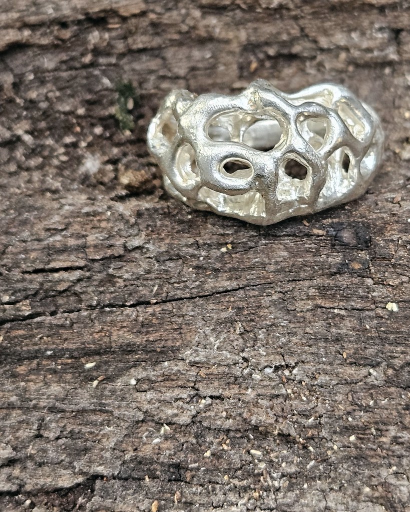 Hand carved from wax and then cast in sterling silver. Hollow in the centre, perfect for little reef fish to swim in and out of. A ring of coral around your finger.